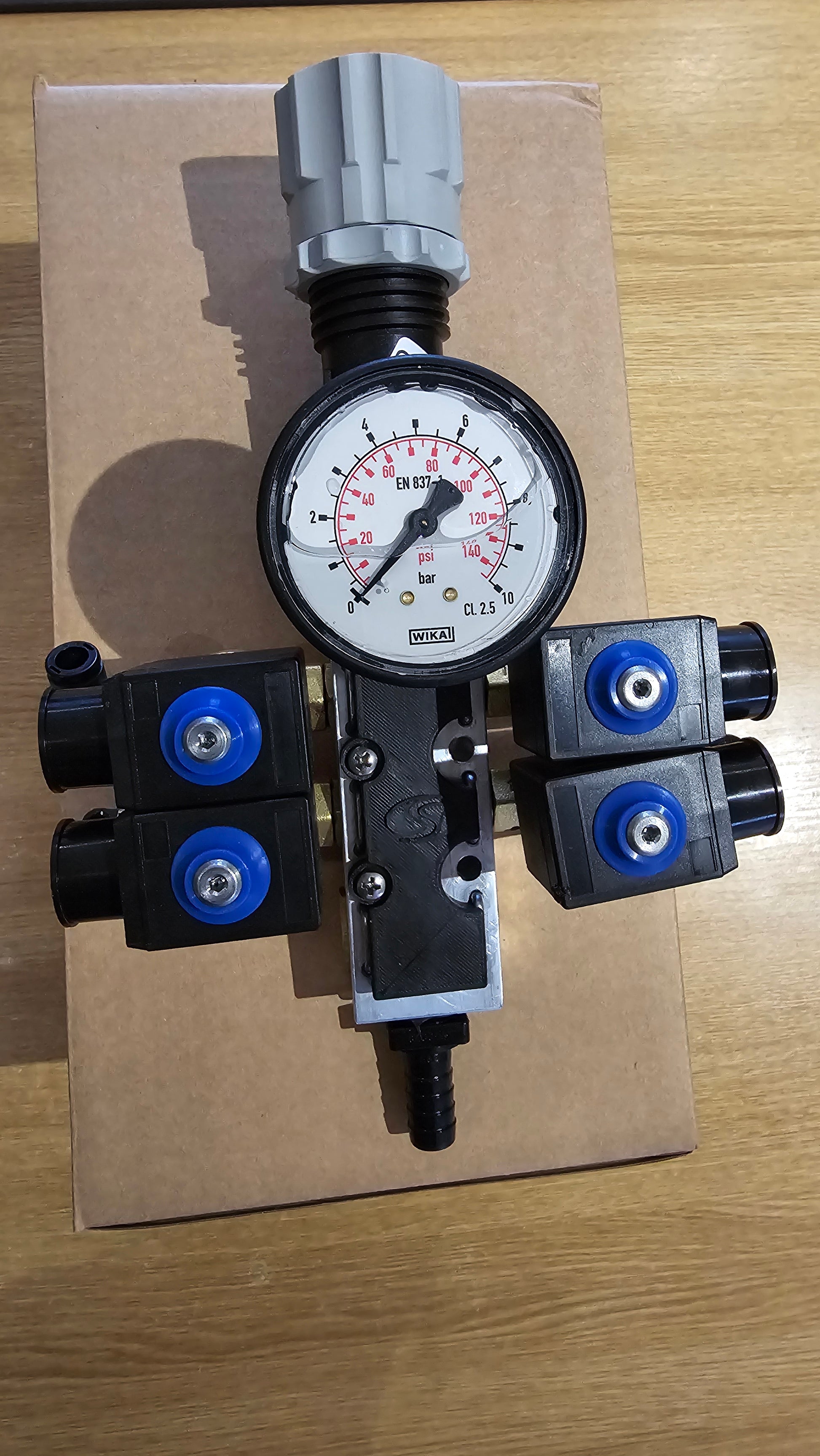 The 4-Way Solenoid Distribution Valve is the perfect solution for precise control of fluid distribution. This valve block allows the operator to efficiently and accurately control 3 separate supplies to boom sections or individual nozzles, giving you the ability to adjust distribution for optimal performance. The regulator and built in gauge allows for accurate pressure control.