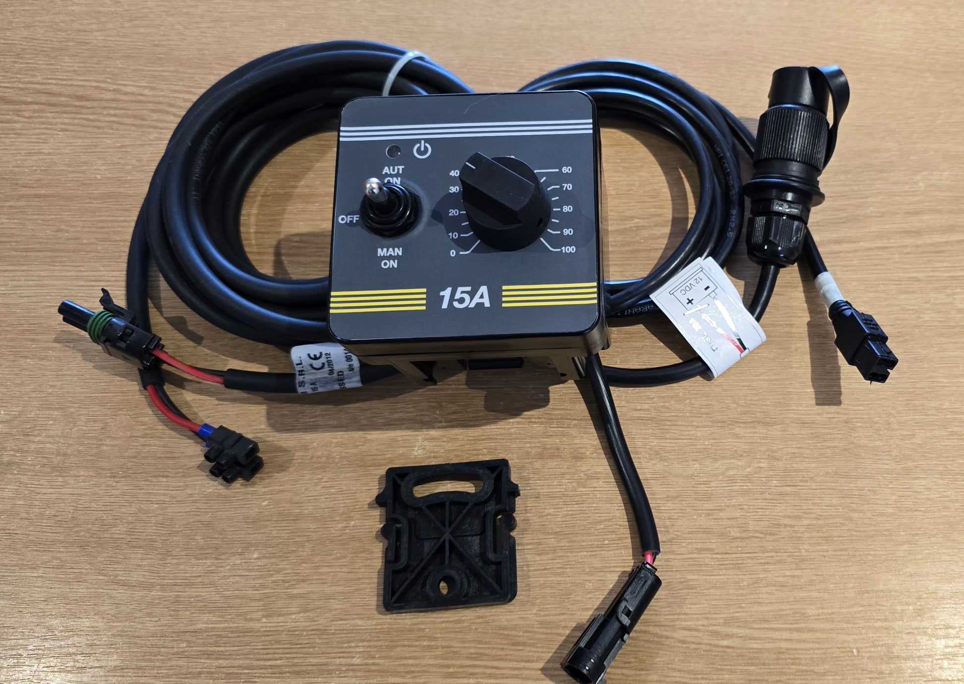 A high quality controller for 12 volt pumps of up to 15 amps. Comes complete with heavy duty power leads and mounting bracket.