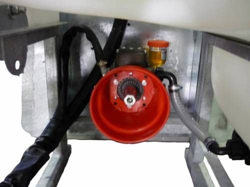 Suitable for tractors of min. 50 HP. Hot galvanized steel tubular frame three-point linkage (type 0 or smaller); polyethylene tank with total tank drainage and folding lid; external level scale; 15L hand-wash tank; suction filter with self-filling valve; hydraulic stirrer; drain valve; remote pressure controller. Hot galvanized conveyor with stainless steel nozzle holder staffs, nylon glass fan with adjustable blades and clutch, one-speed gear box with declutch and neutral position, brass nozzle holders with check valve and independent shutting, ceramic nozzles of 1,0mm.