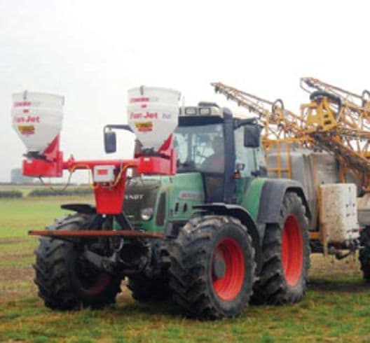 The Duo is designed to spread a large, dense slug pellet typically from 24m up to a maximum of 36m and is designed primarily for front mounted attachment to large self propelled crop sprayers and front linkages of tractors - due to it's size, weight (215 - 315kgs), height and power requirements (60 amps) it is not suitable for ATV's or UTV's.